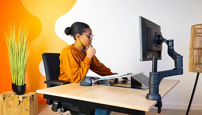 Raising your documents prevents a sore neck and tired eyes. At R-Go Tools, we have developed two ergonomic document holders that help you work healthily and comfortably in different situations. We can help you do your work unhindered in 3 steps: