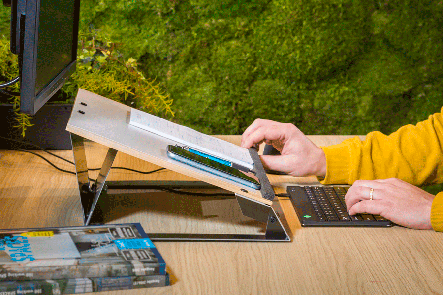 Do you often sit in a bent posture when working with documents? This unnatural posture is provoked by the position where you put your paper on the desktop. With documents next to your keyboard, you quickly find yourself in a twisted posture, while often turning your head.