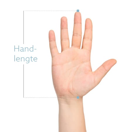 Meet de afstand tussen de rand van je pols en het topje van je middelvinger. Is deze kleiner dan 16,5 cm dan heb je maat S. Bij groter dan 18,5 cm heb je maat L nodig.