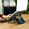 The R-Go Riser Duo is a 2-in-1 solution. You can convert this laptop stand into a tablet riser in no time. The Duo is easily adjustable in 4 positions, so you can always work at eye level. This brings your head into a natural position and reduces tension in your neck and shoulder muscles.