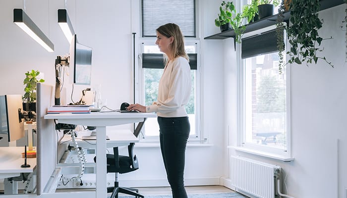 By regularly changing your posture during the working day, you stimulate the blood circulation and prevent physical complaints. Based on actual screen use, the Sit-stand coach controls your desk from sitting to standing or a height in between (for use of a stool or deskbike). You can set your breaks personally and programme your electric desk* to go up or down to your chosen height.