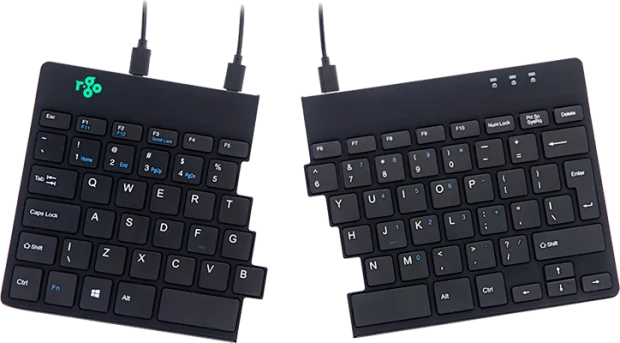 The R-Go Split keyboard consists of 2 separate parts that you can use in any desired position. So you can always type with straight wrists and prevent oppressing tendons and blood vessels. This ergonomic split keyboard can be turned into a compact keyboard with 1 move using the built-in magnet.